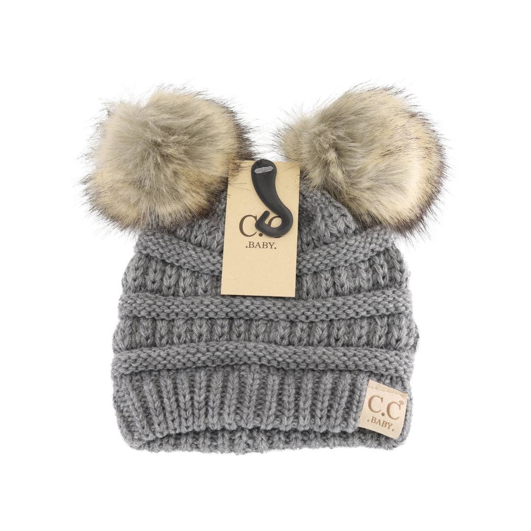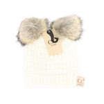 BABY Solid Ribbed Faux Fur Double Pom C.C Beanie BABY43POMPOM