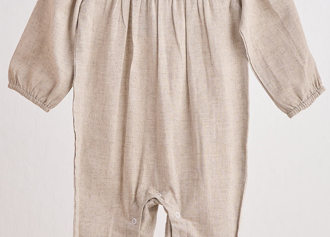 GREY FLORAL EMBROIDERY LINEN GIRL ROMPER
