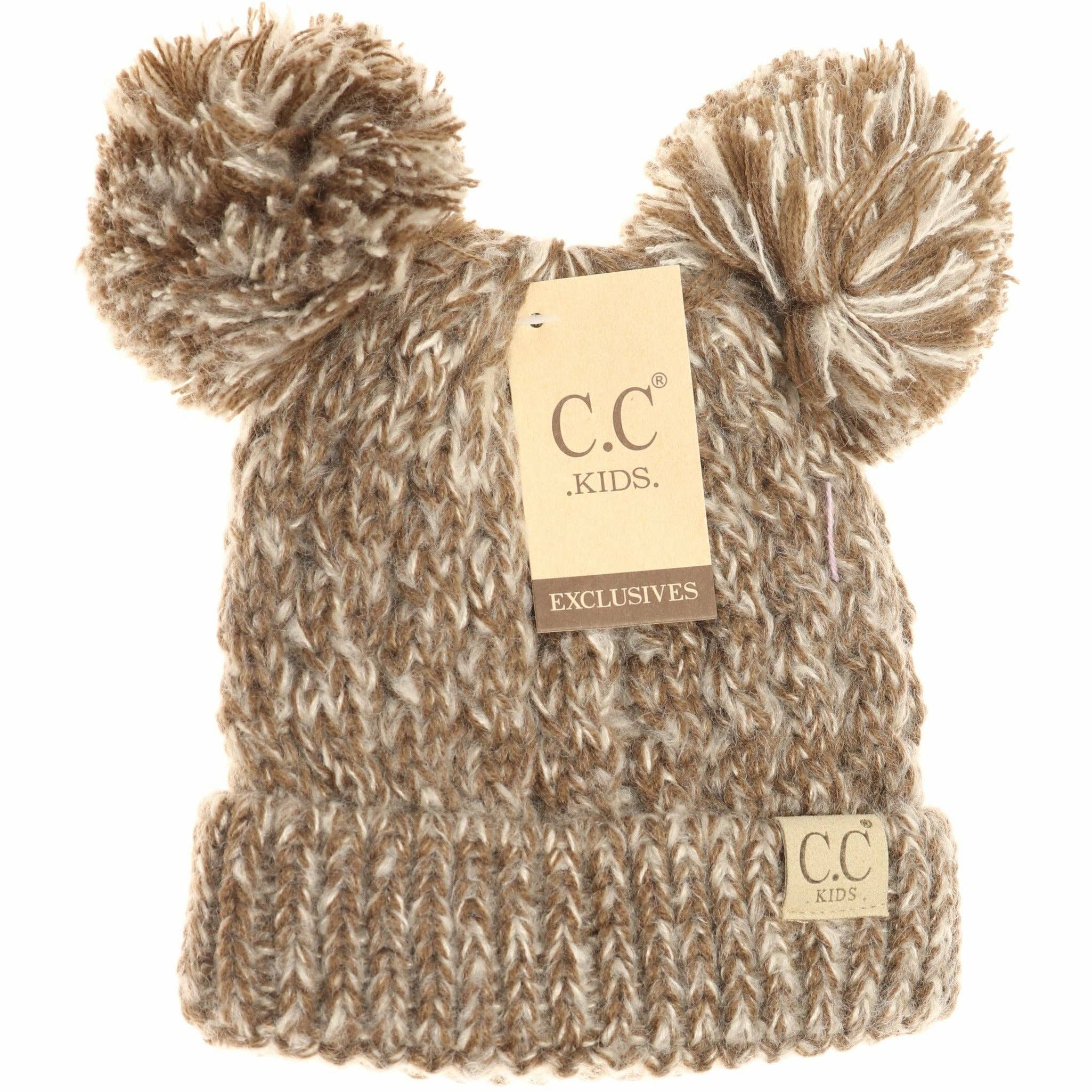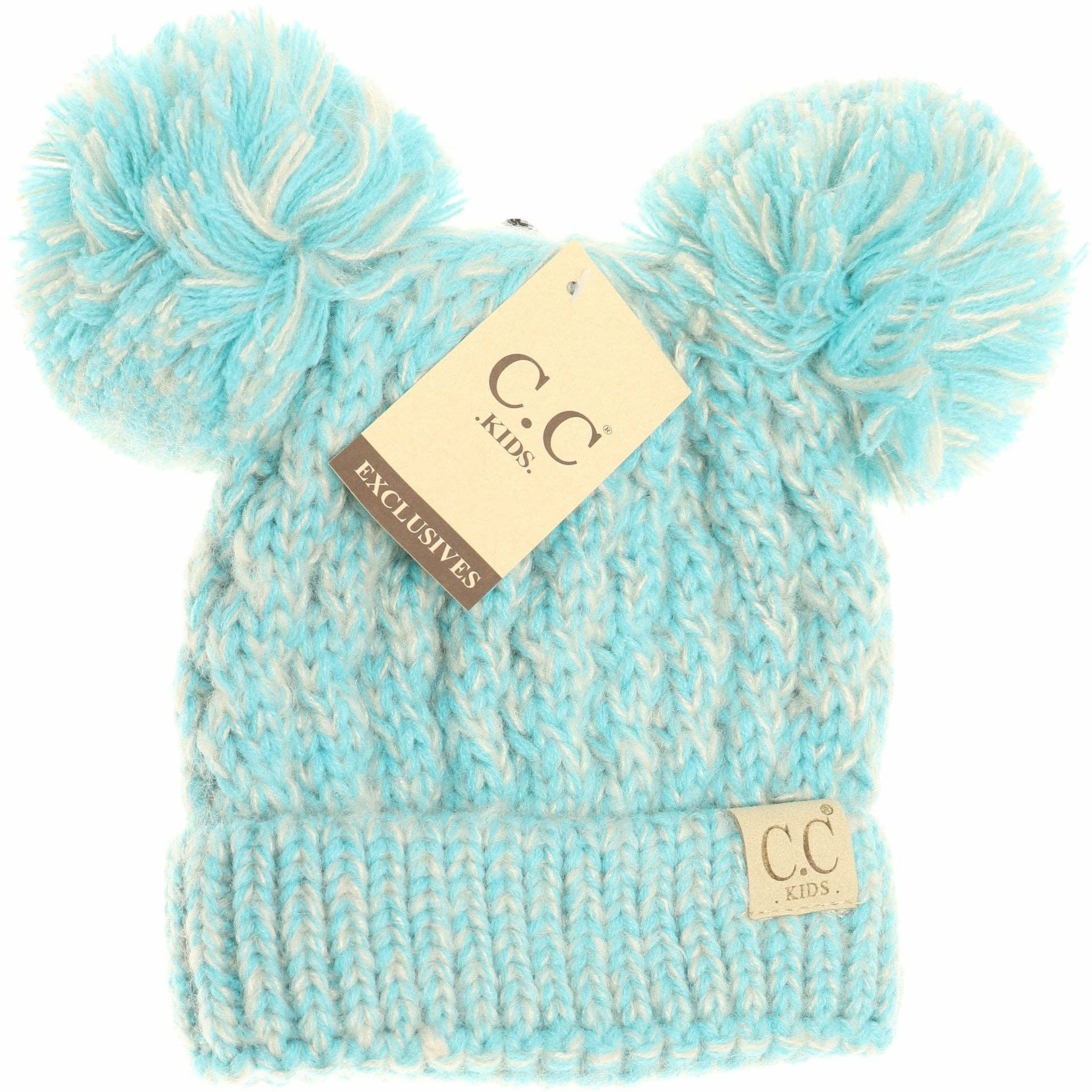 Kids Multi Tone Double Pom CC Beanie